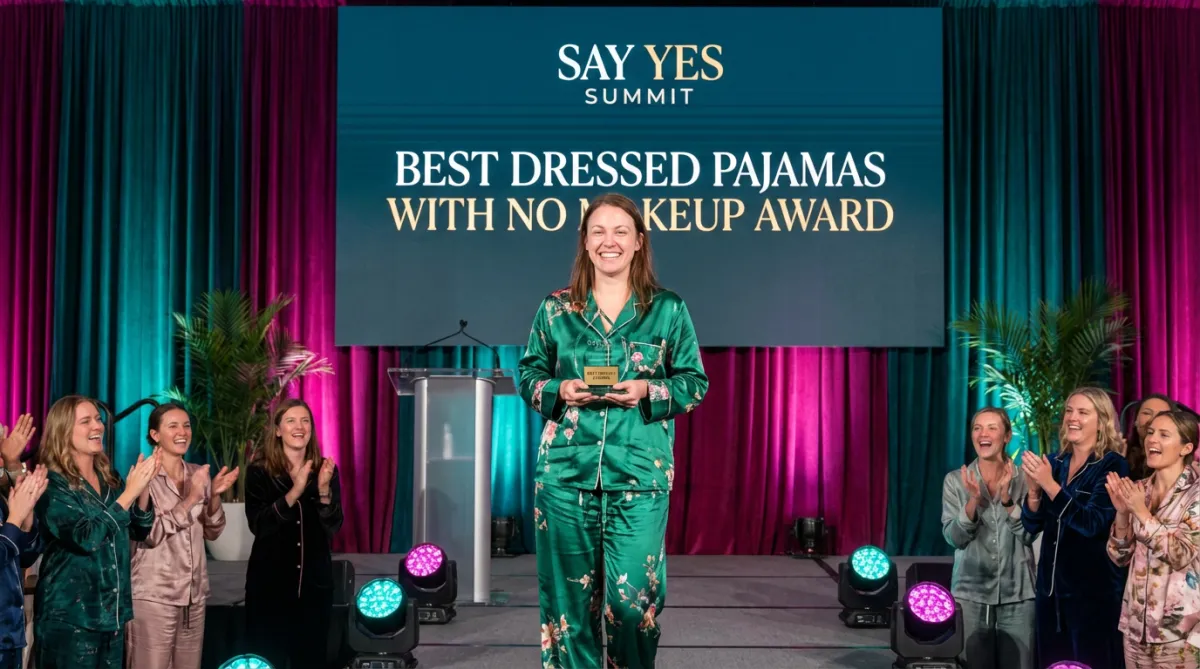 The Best Dressed Pajamas with No Makeup theme is a core part of the Say Yes to Your Business and Yourself Summit experience—not a novelty. This intentional dress code invites women to show up as they are, without performance, pressure, or perfection.