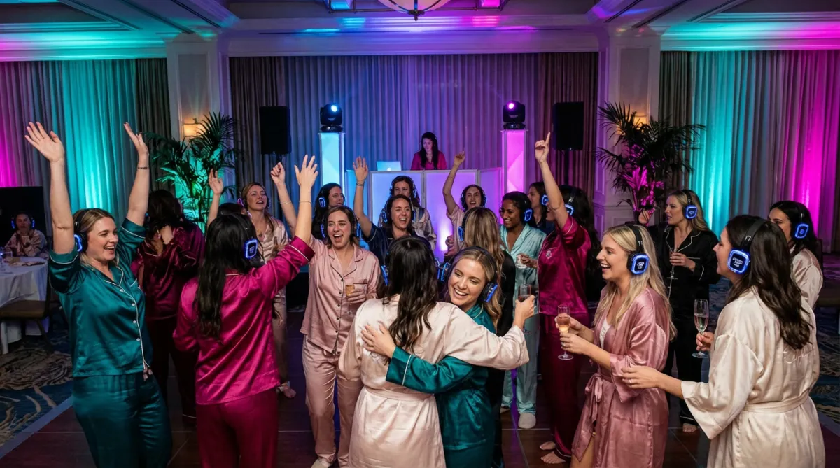 The Silent Disco is a guided, headset-based experience designed to release stress, reclaim joy, and integrate the day’s insights through movement.