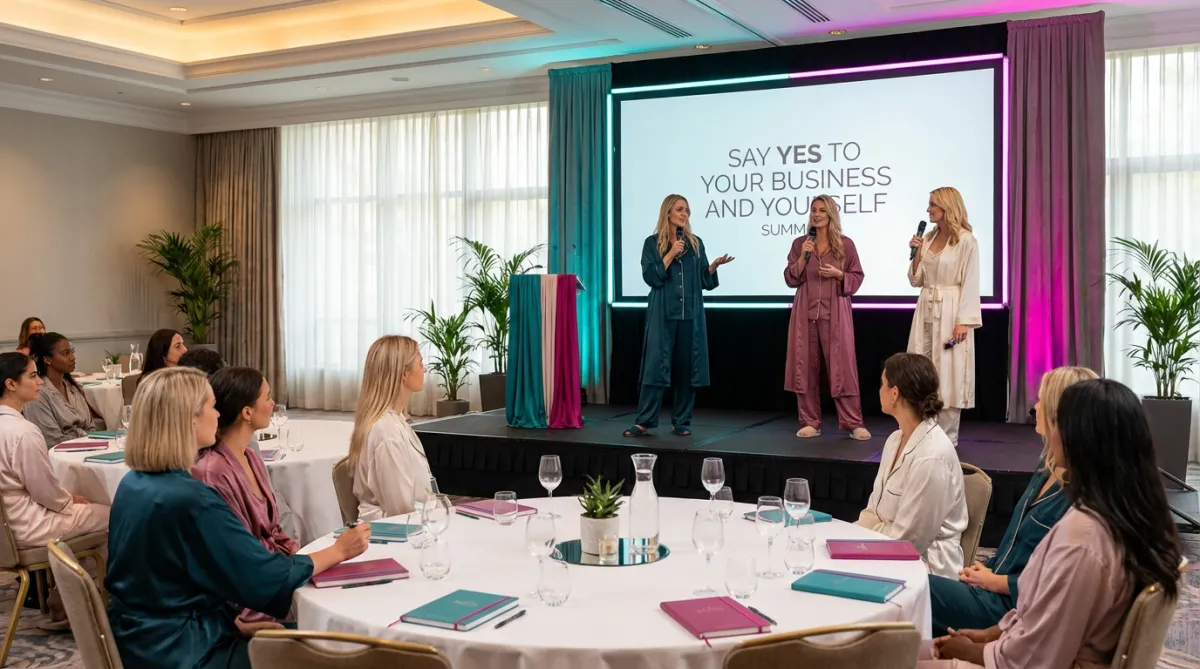 The Best Dressed Pajamas with No Makeup theme is a core part of the Say Yes to Your Business and Yourself Summit experience—not a novelty. This intentional dress code invites women to show up as they are, without performance, pressure, or perfection.